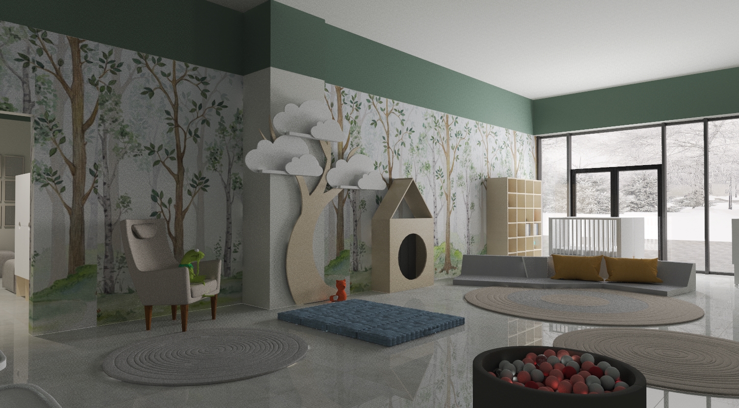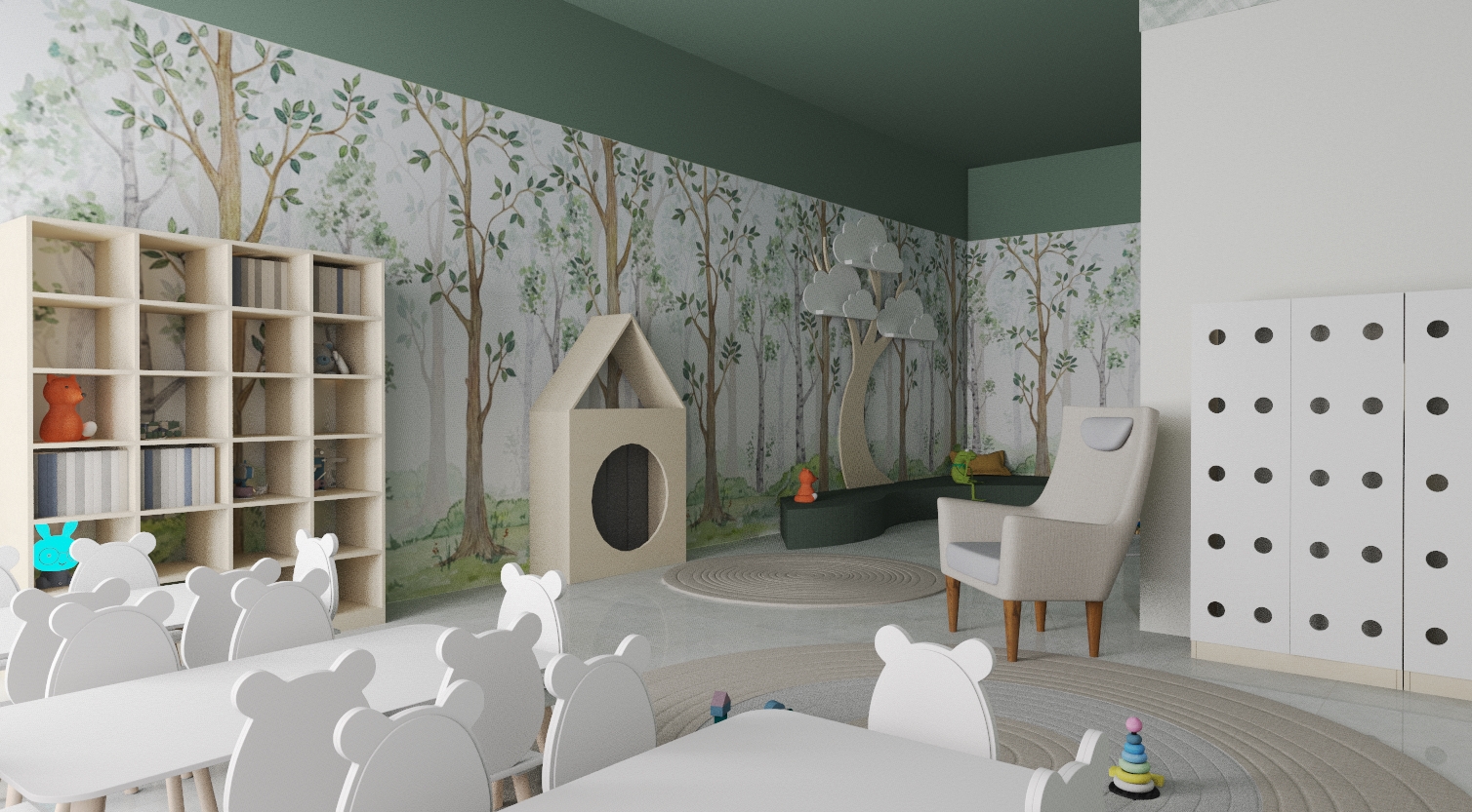 W żlobku funkcjonują cztery oddziały dostosowane do potrzeb najmłodszych dzieci oraz maluchów do 3. roku życia. Każdy oddział posiada nowoczesne i bezpieczne wnętrza zaprojektowane tak, by wspierać harmonijny rozwój dzieci w atmosferze bliskości i radości. W salach maluchom towarzyszą ich ulubieni bohaterowie – Miś, Lisek i Królik – którzy inspirują do zabawy, nauki i wspólnego odkrywania świata.